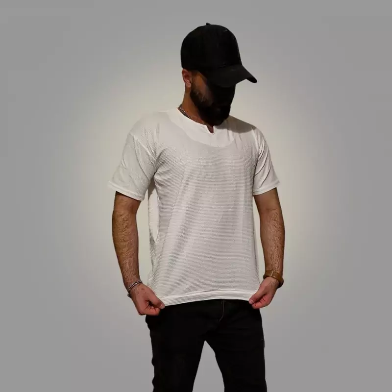 *تیشرت با یقه کوبایی *خاص و جذاب *تن خور زیبا *تک رنگ سفید *جنس پارچه بیستکویتی *در دو سایز XLو2XL